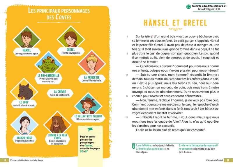 Vous allez découvrir, grâce à eux, des histoires étonnantes : une méchante fée attire Hänsel et Gretel dans sa délicieuse maison de pain d’épice pour les manger rôtis ; une autre transforme un jeune roi en grenouille ; un jeune cabri sauve ses frères dévorés tout ronds par un loup ; un petit tailleur plein d’astuce triomphe de géants et devient roi ; la marâtre jalouse de Blanche- Neige cherche par tous les moyens à l’évincer ; un jeune soldat doit vivre pendant sept années avec une peau d’ours sur le dos pour relever un défi lancé par le diable en personne…