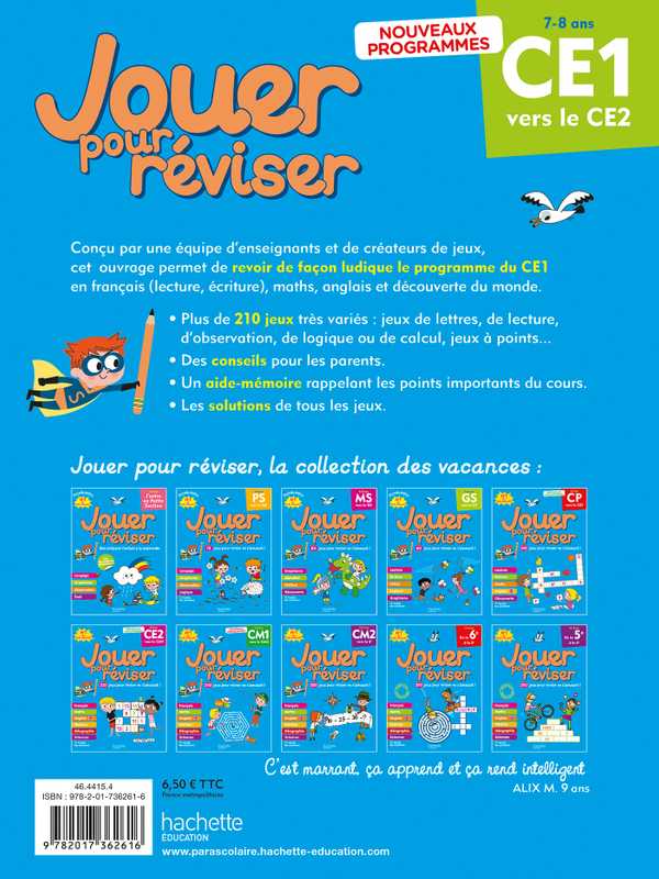 Conçu par une équipe d’enseignants et de créateurs de jeux, cet ouvrage permet de revoir de façon ludique le programme du CE1 en français, maths, anglais et découverte du monde.