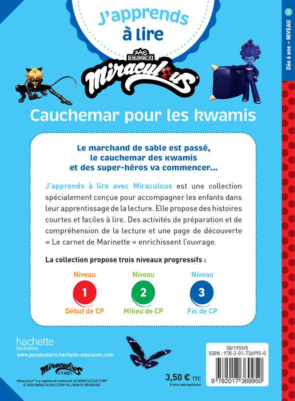 J’apprends à lire avec Miraculous est une collection spécialement conçue pour accompagner les enfants dans leur apprentissage de la lecture. Elle propose des histoires courtes et faciles à lire. Des activités de préparation et de compréhension de la lecture et une page de découverte « Le carnet de Marinette » enrichissent l’ouvrage.