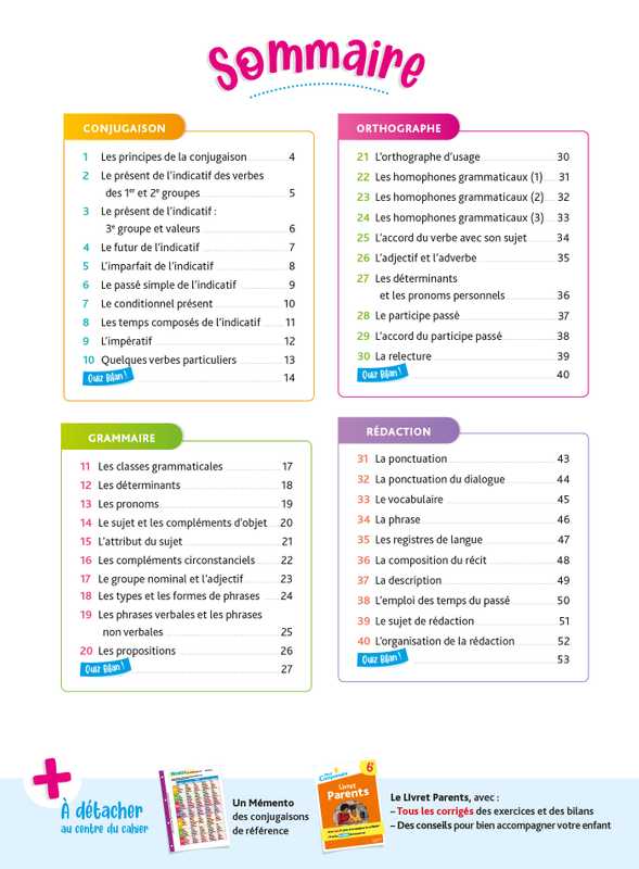+ un mémento détachable avec les tableaux de conjugaison de référence