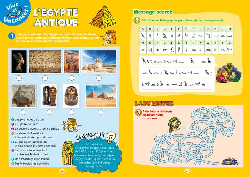 • Des pages « Vive les vacances » remplies de jeux et d’informations documentaires