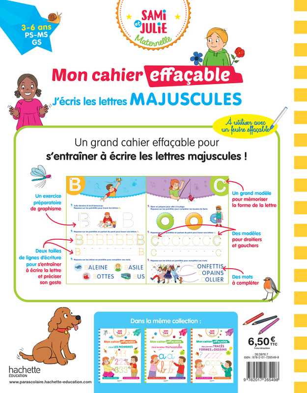 Sami et Julie Maternelle - Mon cahier effaçable - J'écris les lettres majuscules (3-6 ans)