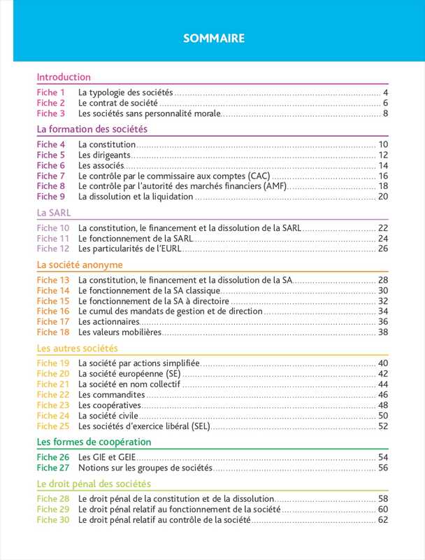 30 fiches efficaces et synthétiques pour comprendre et retenir l’essentiel sur le droit des sociétés :