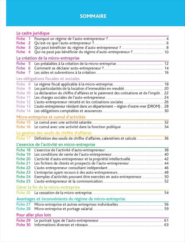 30 fiches efficaces et synthétiques pour comprendre et retenir l’essentiel sur le statut de micro-entrepreneur (anciennement «auto-entrepreneur») :