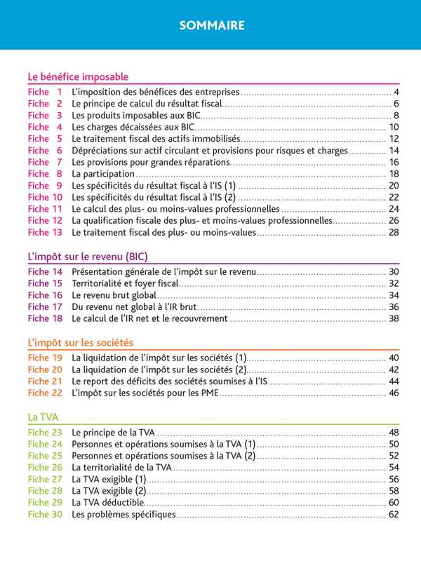 30 fiches efficaces et synthétiques pour comprendre et retenir l’essentiel sur la fiscalité :