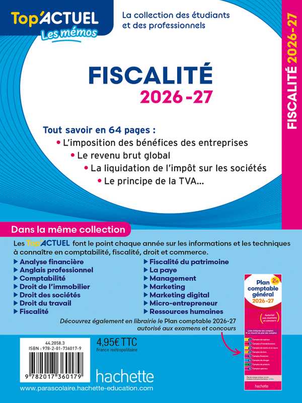 Depuis 15 ans, les Top'Actuel sont mis à jour chaque année et donnent les informations et les techniques à connaitre en comptabilité, fiscalité, droit et commerce. Ils s'adressent aux étudiants (école de commerce, université, BTS, IUT, DCG...), aux personnes en formation continue et aux professionnels.